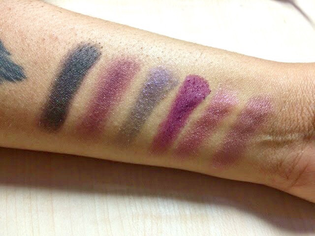 | Sleek i-Divine Vintage Romance Eyeshadow swatches (top row) |