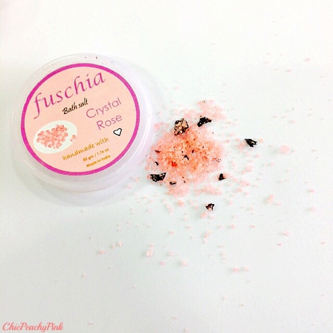 The Fuschia crystal rose bath salt is a natural and handmade bath salt. The product is housed in a see through plastic tub. Being a rose scented bath salt it has rose petals and mainly rose essential oil in it that gives it a pleasant and calming scent. The rose scent helps you relieve stress with the help of aromatherapy. As per the instructions you are supposed to use 50 grams of the product for one bath making this tub a one time use product. However, I find the scent a bit overpowering and that is why prefer to use only 20-25gm per bath.
