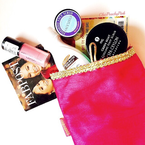 It has been raining beauty subscriptions on the blog lately. With the festive season coming up the theme of this month's Fab Bag was Get Set to Celebrate. The ethnic bag complimented the theme very well. The bag was a classy red with a pink flap over it that was covered with some gold detailing. So lets peek and see what did I get in this pretty bag: