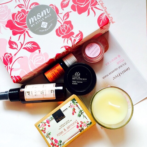 For my friends who aren't aware of MSM Box, its a subscription box service for women. They have two variants of monthly subscriptions MSM Select box and MSM Express box. There is a charge of Rs. 495/- per month for the MSM Express box and a charge of Rs. 995/- per month for the MSM Select Box. Excluding this they have lately introducted a MSM Diva Box that consists of only makeup products for all the makeup lovers, it retails at Rs. 1995/-. There is a grooming and fashion subscription box even for men called MSM Bulldawg which retails at Rs. 1595/-. Each month they have a unique theme and the boxes are curated as per the theme. This month's its an Anniversary Edition Box or Rose Box.
