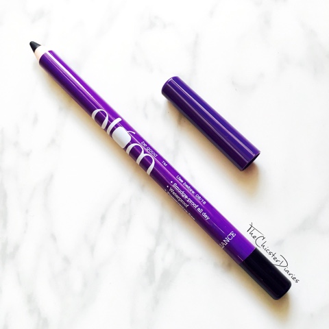 Texture: In spite of being smudge-proof and water-proof this kohl-cum-liner is gentle on my sensitive eyes and it even delivers an ultra black finish in a single swipe (as pictured below). This gel based liner is made using the goodness of hydrogenated castor oil, rice bran wax, natural vitamin E. The formula is intensely creamy and glides on the lids and waterline like a dream.