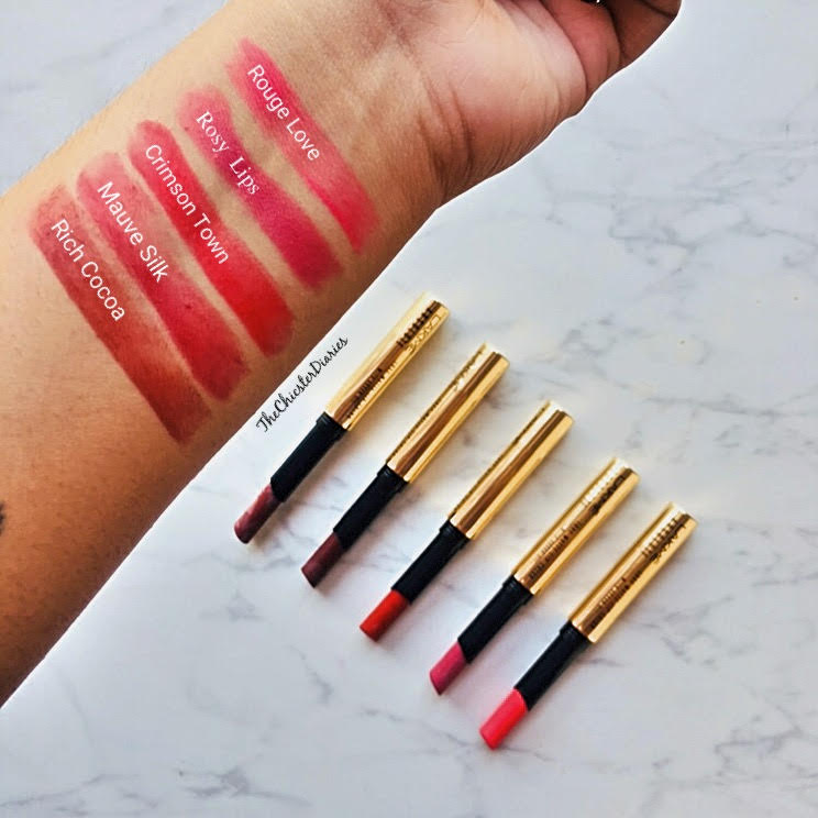 Swatches of the Lakmé Absolute Luxe Matte Lip Color with Argan Oil