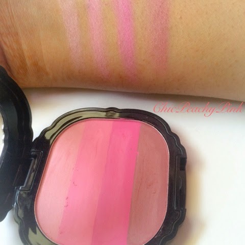 The City Color blush quad is available in 6 colors namely Baby Pink, Brown, Coral, Nectar, Pink and Rose. I received the shade Pink in my bag and its fabulous. The packaging of this blush is so adorable as you can see in the picture above. There are 4 gradient shades of pink included in this quad. I have even tried using the top most shade as a highlighter and it works wonders. Being the lightest shade of the lot it appears to be a marshmallow pink shade and is not obvious when applied as a highlighter. The colors are not extremely pigmented and provide a subtle healthy glow. When all of these colors are mixed and applied the shade will suit all sunkissed beauties like me. All the shades contains subtle glitter particles which are not at all noticeable unless observed closely. All in all a beautiful day wear blush.