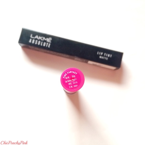 The first look of the lip tint really impressed me cause of the matte twist up crayon packaging it had which matched the color of the product inside. This range has 6 color options to choose from out of which I chose Pink Fantasy which is a cool toned pink. This color is a one of the prettiest pinks I own and have already been complimented a couple of times when I wore it.