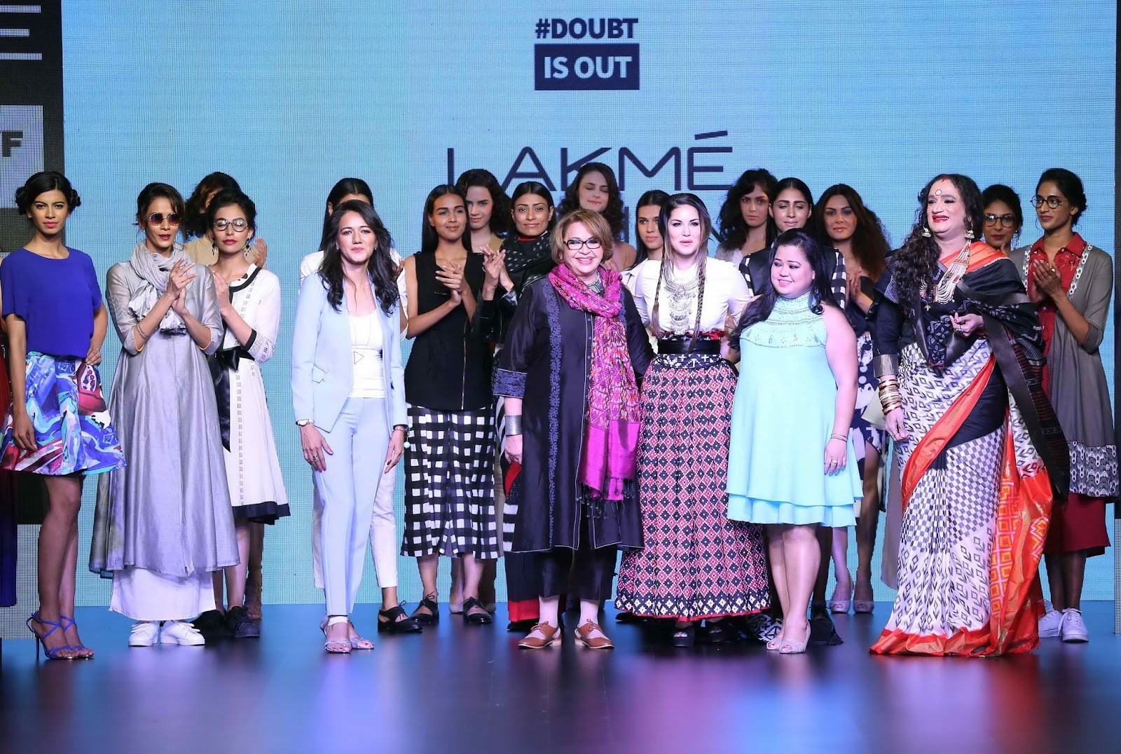 #DoubtIsOut was one of the first kind of fashion shows powered by Reliance Ajio.com where all the norms of a fashion show were broken. The Doubt is Out Collection focused on breaking the pattern and dressing up fearlessly. The collection consisted of everything right from Leather jackets with Saris to palazzo pants, graphic skirts. As the collection focused on living life to the fullest and experimenting with looks, it covered a wide variety of colors from Monochromes to popping sunset colors.