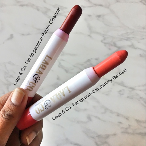 | Laqa & Co. Fat Lip pencil in Palate Cleanser and Jammy Bastard |