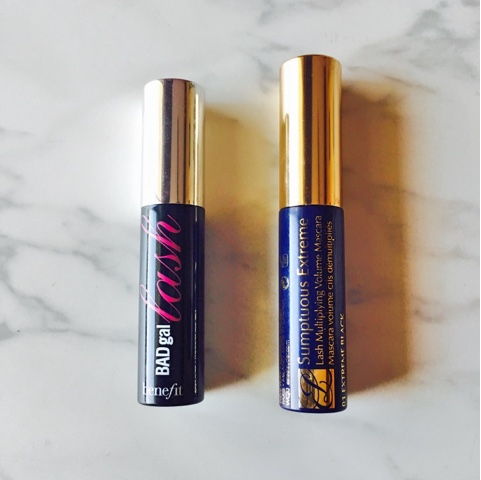 | Bad gal lash mascara Luxury travel size by Benefit, Estee Lauder Sumptuous Extreme Luxury travel size in 01 extreme black |