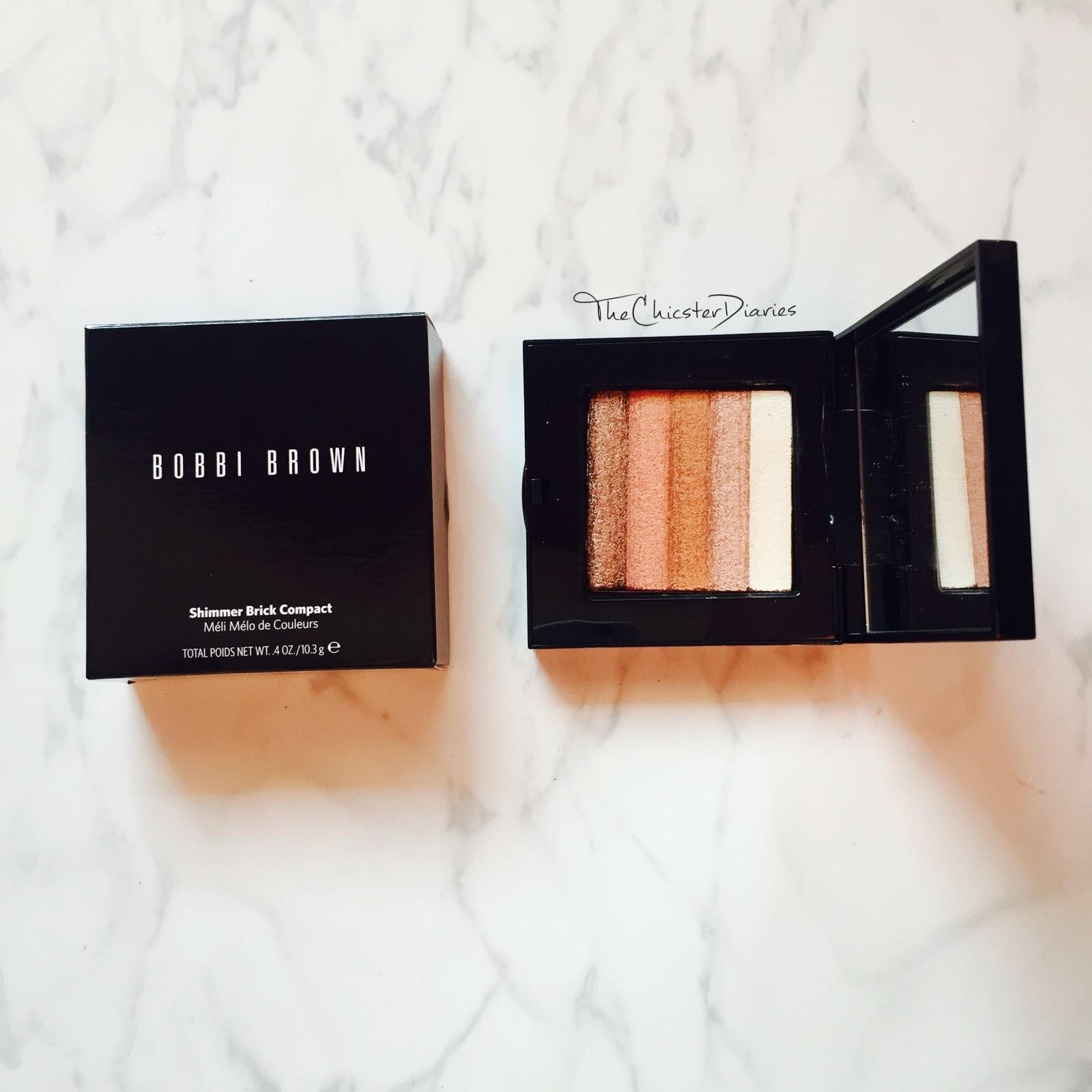 - The Bobbi Brown Shimmer Brick is a palette of 5 complementing strips of shimmer that follow a gradient pattern of bronze. The product comes in a glossy black, square packaging and a mirror that makes the product convenient to use.