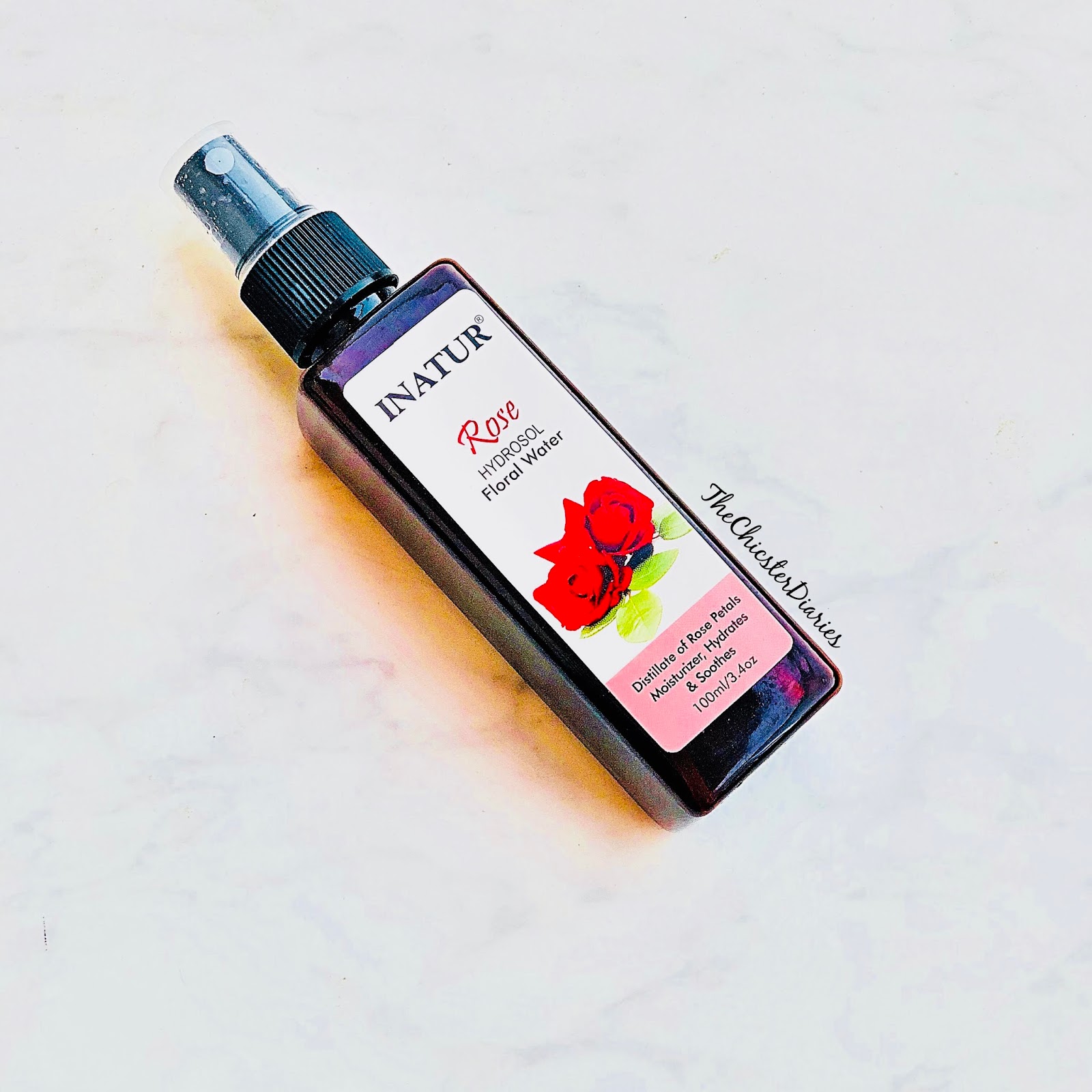 Results: A hydrosol is nothing but floral water that has the therapeutic properties of essential oils but in a lesser concentrated form. The Inatur Rose Hydrosol is 100% natural and formulated by steam distillation of rose petals. This product hydrates and calms the skin, giving it a healthy, supple glow. It is a perfect addition to your vanity for summer as it not only refreshes the skin but also soothes irritated skin. The Inatur Rose Hydrosol floral water is a lot like my absolute favorite Kama Ayurveda Rosewater in terms of consistency, texture, scent, however, it is available for only a fraction of the price. I personally love using this as a toner as its lightweight texture pairs well with sunscreens.