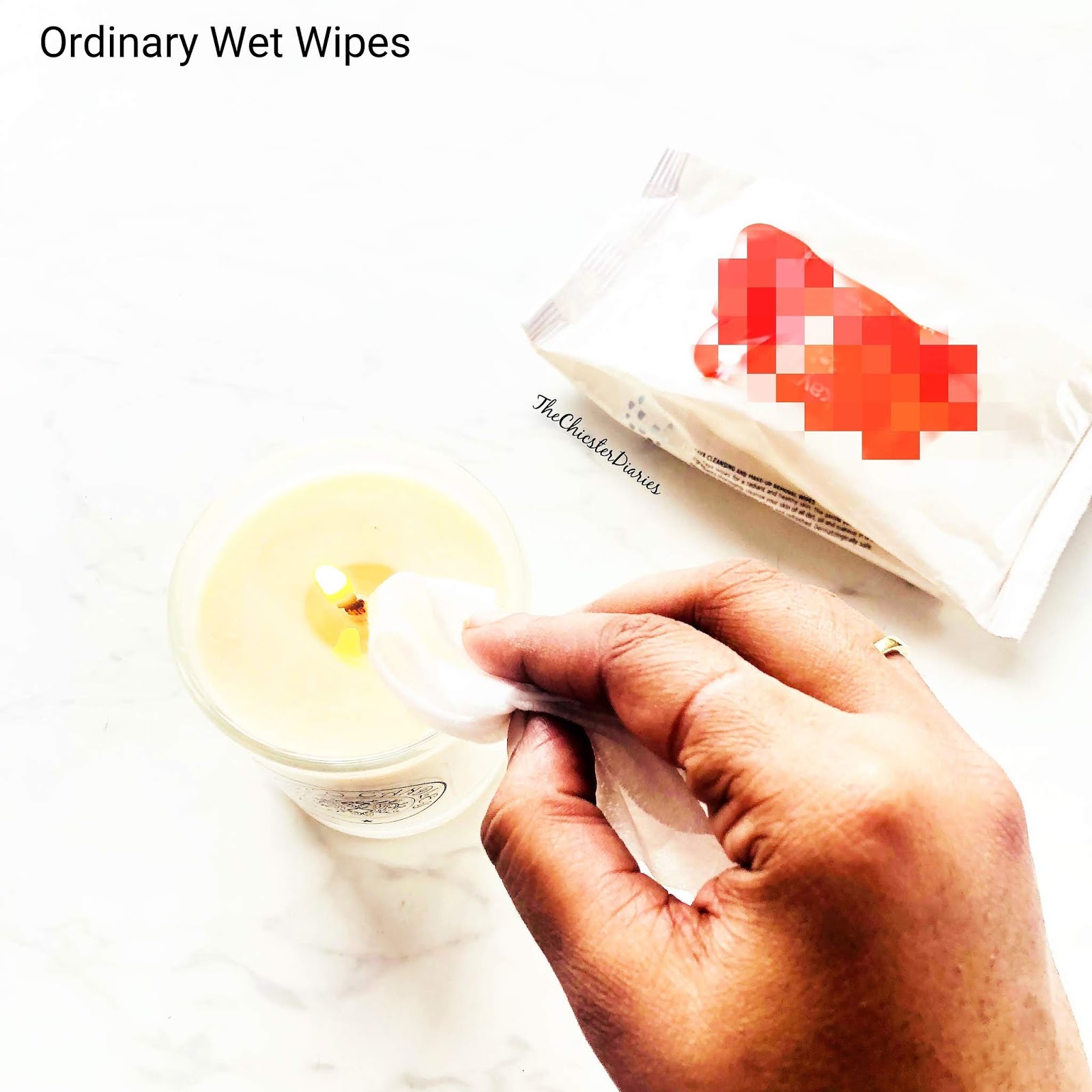 Step 3: Hold the corner of the wet wipe near the candle flame