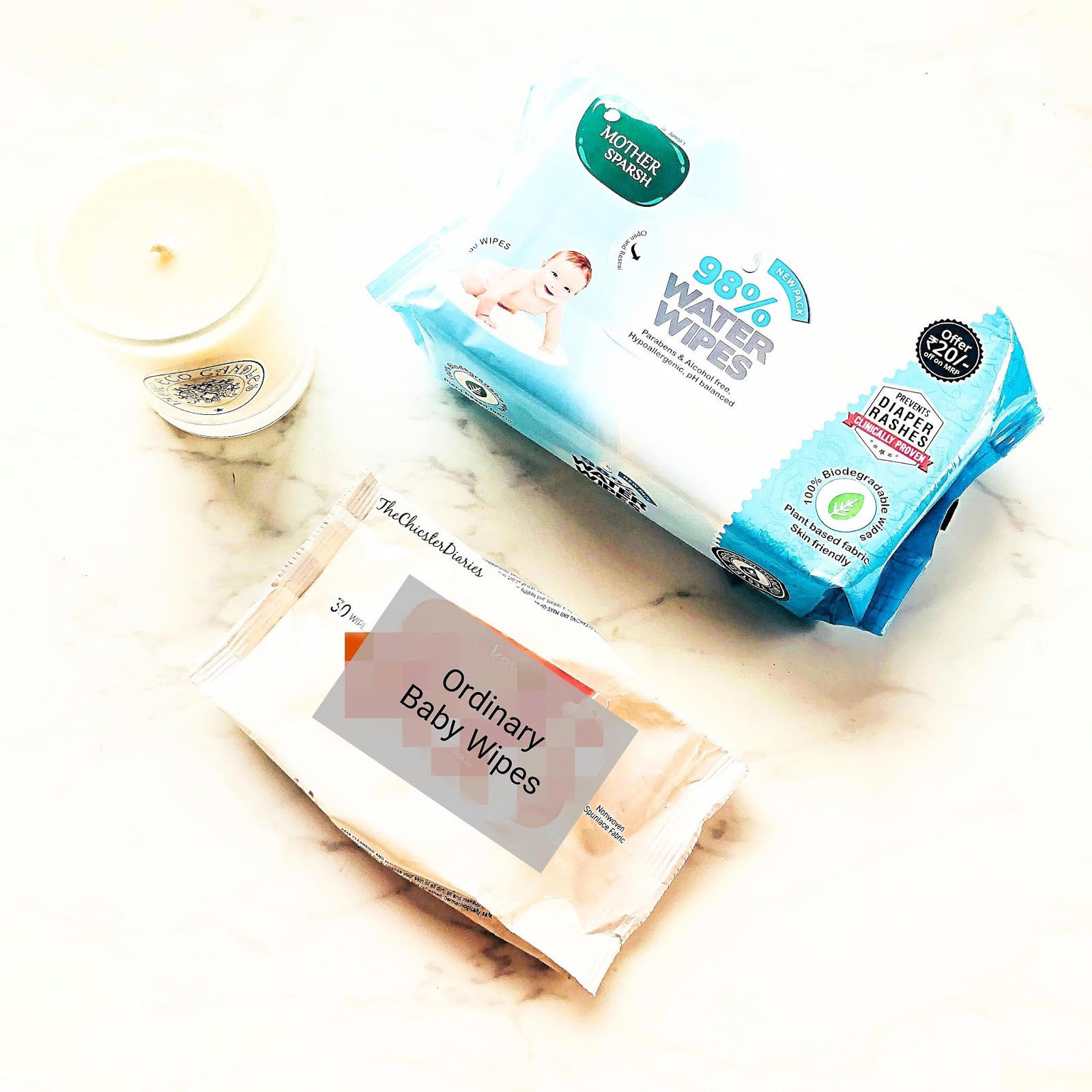 - Wet wipes (I have taken 2 brands for better comparison)
